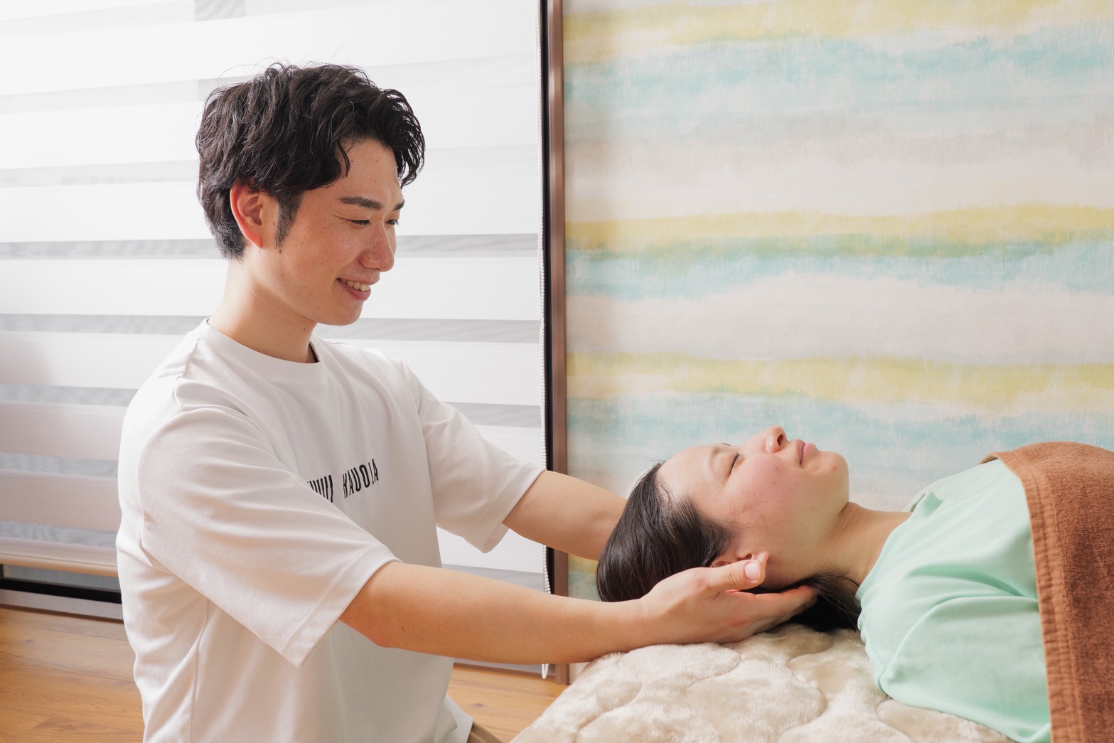 施術では、痛みを伴う強い刺激は行いません。リラックスした状態で、根本原因にアプローチしていきます。